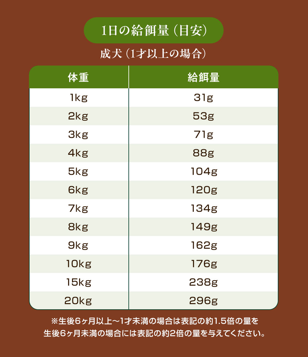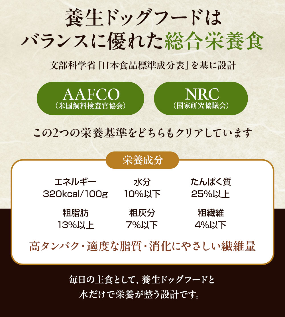 - ※七訂 日本食品標準分析表を基にした設計成分値において、AAFCO(米国飼料検査官協会)の栄養基準を満たしています。